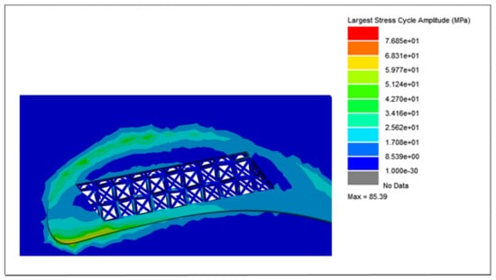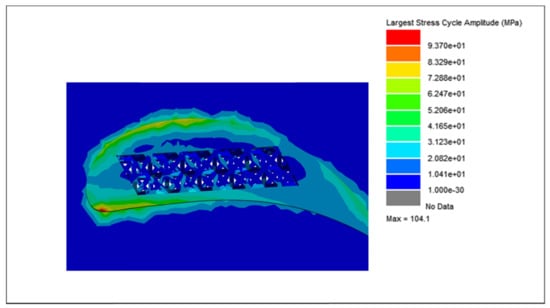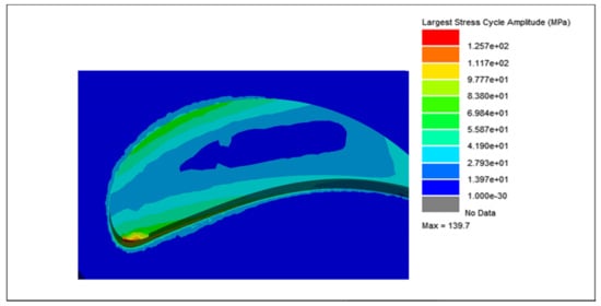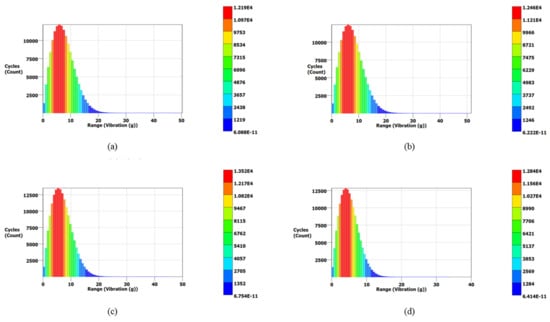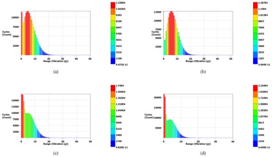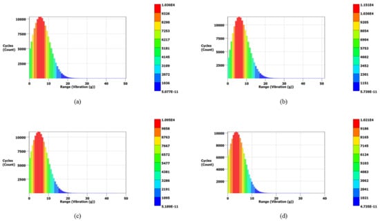 Vibration fatigue analysis is carried out for the structures operating in the vicinity of natural frequencies [,]. Vibration fatigue analysis differs from traditional fatigue analysis. In vibration fatigue analysis, the modal characteristics and structural dynamics of the structure are considered in dynamic stress simulation [].