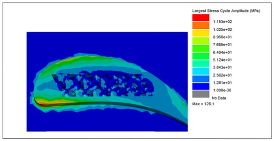 Therefore, it can be concluded that octet-truss lattice infill blades exhibit better vibration fatigue characteristics compared to solid blades, making them a potential replacement for conventional solid blades, enhancing durability. However, further studies are required to investigate the cooling effectiveness and effect of combined vibration and thermal loads on the fatigue life of the blades in order to fully establish the utility of octet-truss lattice infill blades in turbine rotors.
