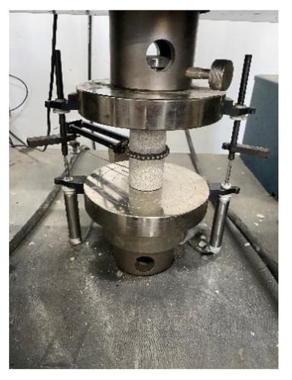 Three sets of sandstone specimens treated at room temperature and high temperatures were subjected to conventional uniaxial compression tests and cyclic loading and unloading tests using a graded loading and unloading tester. Three sets of sandstone specimens treated at room temperature and high temperature were subjected to conventional uniaxial compression tests and cyclic loading and unloading tests using a graded loading and unloading tester. First, the unconfined compressive strengths of the sandstone specimens were measured using uniaxial compression tests at room temperature, 400 °C, and 800 °C to be approximately 90 MPa, 70 MPa, and 50 MPa, respectively, which provided the basis for the subsequent test parameters. The uniaxial compressive strengths of the sandstone at room temperature, 400 °C, and 800 °C were approximately 90 MPa, 70 MPa, and 50 MPa, respectively, so each set of specimens at different temperatures was tested at 7, 5, and 3 levels of addition and removal, respectively. The peak load stresses were about 30, 40, 50, 60, 70, 80, 90, and 100 MPa for sandstone at room temperature; the peak load stresses in sandstone at 400 °C are about 30, 40, 50, 60, 70 and 80 MPa; the peak load stresses in sandstone at 800 °C are about 30, 40, 50 and 60MPa. The specimens were damaged when the sandstone was loaded at room temperature, 400 °C and 800 °C to the seventh, fifth, and third levels, respectively. The test equipment is shown in Figure 2.