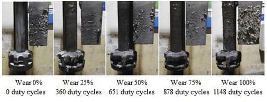 The refining process and the lifespan of rotors were assessed according to the number of cycles at which a certain percentage of rotor wear is reached. Reaching the individual stages, or specific degree of rotor wear, was determined after consultation with the suppliers of the individual rotors. Table 6 defines the number of cycles for which the monitored rotor wear is considered. For each type of rotor, 5 series of operational experiments were performed to monitor the degree of wear 0–100%.