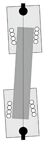 The ideal clamping state yields that the alignment deviations—originating from the spatial dislocation of the central axis of the fixtures—are independent of the geometries of the cruciform specimen. The additional bending strain comes from two aspects: the dislocation of the central axis between the fixtures in space and the unsatisfactory clamping state of the fixture to the specimen. The unsatisfactory clamping state of the fixture to the specimen leads to an eccentric load, which varies with the cruciform specimen’s geometries, such as the length, width, and thickness. Theoretically, the dislocation of the central axis between fixtures in space is the attribute of the test system itself, independent of the geometry of the cruciform specimen. Resting on the ideal clamping state of the fixture, we only consider alignment deviations: the spatial dislocation of the central axis between fixtures.