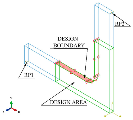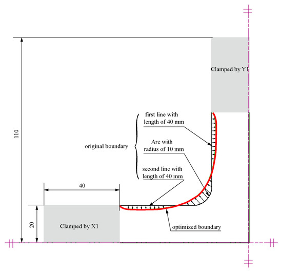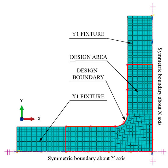 Figure 4). The quarter model comprises four parts: clamping part X1, part X2, design boundary, and design area.