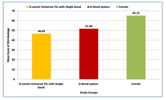 In this study, Constic showed a greater amount of microleakage when compared with Single Bond and G-Bond. The possible reasons could be due to the incorporation of different monomers and compositions. A hard tissue interaction of self-adhesive flowable composites is found to be unlike the conventional composites [36]. The flowable composite tends to show a high water absorption. When the hydrophilic monomers are correlated to the conventional composites, they display a high tendency of water absorption. This, in turn, results in the breakdown of the polymer chains as the matrix swells due to water absorption because of the hydrophilic nature of the monomers in self-adhesive flowable composites. Such interactions might affect the bonding ability of the self-adhesives, which, in turn, cause a weak adhesion and failure [37].