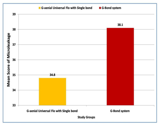 Comparison of mean values of microleakage in class V cavities with Single Bond and G-Bond system, using G-aenial Universal Flo.