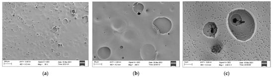 The carbon residue rate of epoxy resin after combustion was low, but the carbon residue surface was dense and flat with few through holes. The main reason for this is that the volatile content was relatively small, and the Figure 14c 2000× magnification figure shows that the combustion form is deepening combustion layer-by-layer at the hole-forming place.