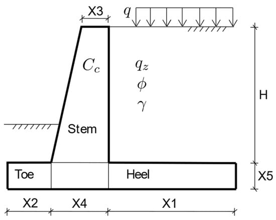 - Kaveh, A.; Kalateh-Ahani, M.; Fahimi-Farzam, M. Constructability optimal design of reinforced concrete retaining walls using a multi-objective genetic algorithm. Struct. Eng. Mech. 2013, 47, 227–245. [Google Scholar] [CrossRef]