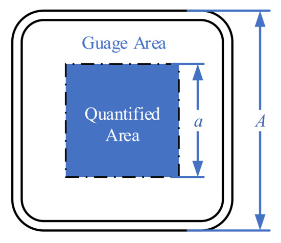 To assess the stress uniformity in the gauge zone, we calculated the average and standard deviation of the stresses (von Mises, S11, S22, and S12) within a square area centred on the origin (Figure 10). A length ratio of 0.9 (a/A) was used as the quantified area to mitigate the effects of stress concentration along the gauge zone boundary.