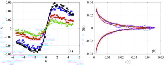 Figure 2b relates to the half of this transition zone where Equation (3a) is not valid; therefore, the fitting is carried out using this equation, and translated by a time longer than half of the chopper response (around