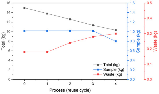 The authors of [4] showed in their work the difference between two different powder reuse strategies. The strategy used in the presented work (continuous reuse/single batch) has its limit regarding powder availability for producing the subsequent samples. At a certain moment, it is impossible to process samples with the same geometry due to the lack of powder. Therefore, the number of cycles is limited by the quantity of powder without rejuvenation.