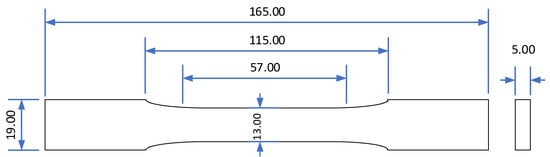Dimensions of dogbone samples in accordance with ASTM D638-14 [17]. All dimensions in mm.
