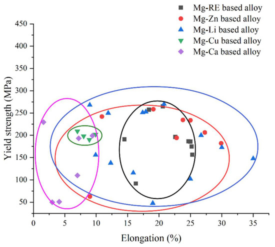 | Mg-2Y-1Zn-0.4Zr-0.3Sr | 195 | 254 | 27 | 0.47 | [39] |