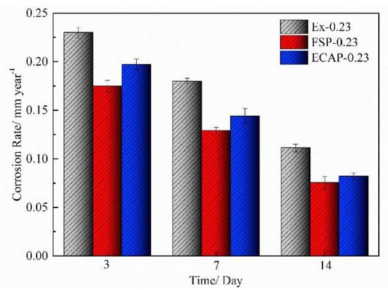 - Cao, X.; Zhang, Z.; Xu, C.; Ren, C.; Yang, W.; Zhang, J. Micro-galvanic corrosion behavior and mechanical properties of extruded Mg–2Y–1Zn-0.4Zr-0.3Sr alloys with different extrusion temperament immersed in simulated body fluids. Mater. Chem. Phys. 2021, 271, 124928. [Google Scholar] [CrossRef]