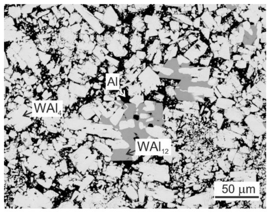 BSE micrograph of the microstructure of master 15W-85Al (at.%) alloy.