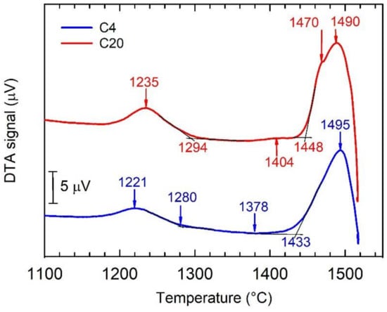 DTA cooling curves for the C4 and C20 alloys.