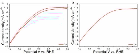 Cyclic voltammograms (a) and linear scan voltammograms (b) of Cu/C in CO2-satruated 0.1 M KHCO3 solution collected at a scan rate of 20 mV s−1.