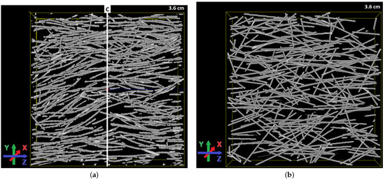see [50,54,55,56] for details and applications. The anisotropy parameter β controls the alignment of the fibres. For β = 1 , the fibres are isotropically oriented. For decreasing β , the fibres tend to be aligned along the Z-axis, see Figure 5. For β > 1 , the fibre orientations are concentrated in a plane. This case is not considered here.