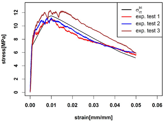 Figure 9. Prediction of composite stress σ c t ( ε ) by σ c t t r i ( ε ) based on the trilinear model.