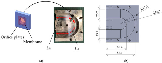 Figure 2a presents the delay tube section of the interference silencer with zero-mass metamaterials used herein. Figure 2b presents the dimensions of the delay tube. Table 1 and Table 2 present the specifications of the thin films and orifice plates used in the experiments, respectively.
