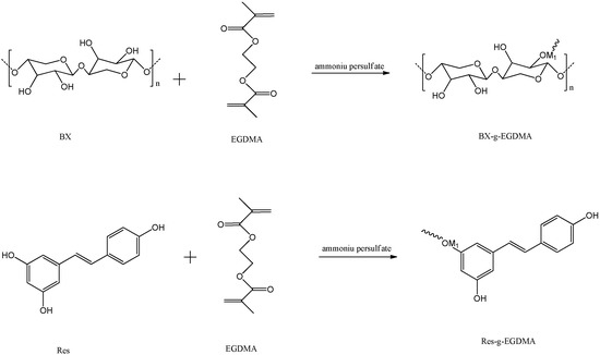 A schema of the chemical modification of BX/Res with EGDMA is represented in Figure 1a.