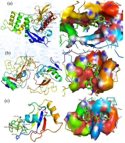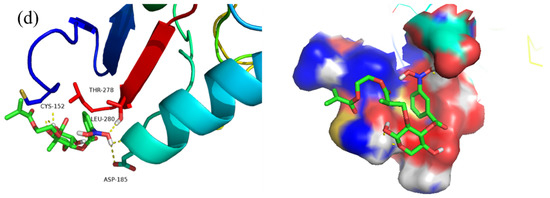 Molecular docking was used to evaluate the binding ability of ligand molecules and receptor proteins based on the principles of energy matching, geometry matching and chemical-environment matching and to predict the best binding mode between them, the optimal confirmation, so that the free energy of the whole system was minimized. A molecular-docking study was performed using a module integrated into Autodock molecular modeling software. The structures of 2HE7, 5JQI, 5ZSY and 6YAU were obtained from Protein Data Bank (http://www.rcsb.org/pdb, accessed on 26 March 2022) [36,37].
