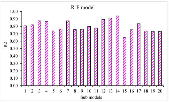 The coefficient correlation (R2) values of the R-F sub-model.