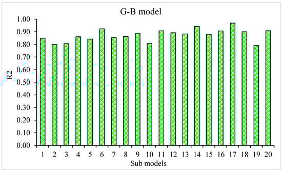 G-B sub-model’s coefficient correlation (R2) values.