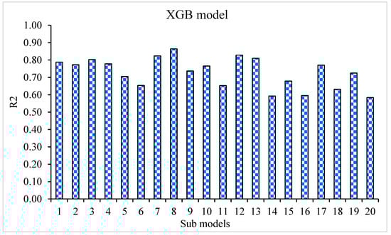 XGB sub-model’s coefficient correlation (R2) values.