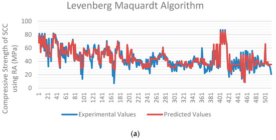 The results of all performance measures, including R-value and MSE of the whole model with training, validation, and test, are finally summarized in Table 4. Therefore, these findings suggest that the Levenberg–Marquardt method is suitable for estimating the compressive strength of self-compacting concrete using recycled aggregates.