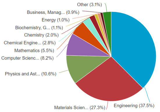 The meta-analysis conducted on the scientometric review in this section focuses on the literature search using publication subjects as presented in Figure 9 and Figure 10. They represent the subject-based categorization of papers on additive manufacturing for engineered lattice structures. Engineering-related disciplines accounted for the largest percentage in the 2022 data at 37.5%, followed by Materials Sciences at 27.1%; these two occupied over 50% of the quadrat on publication subjects. It was followed by Physics and Astronomy at 10.6%, then Computer Sciences at 8.2%, then Mathematics at 5.5%, then Chemical Engineering at 2.8%, then Chemistry at 2.0%, then Biochemistry at 1.1%, then Energy at 1.0%. The least was achieved by Business Management at 0.9%, whereas Others, which included minor subgroups, were at 3.1%, which showed that there were other evolving areas that worked on application of additive manufacturing. Furthermore, it was noted that research on Engineering in 2022 data surpassed other areas, which could be seen in the need to develop control materials for the COVID-19 pandemic and systems for manufacturing and the production of oil and gas, among others. These are seen in some of the sampled papers from the screening conducted on the papers used in this study. In other comparable domains, similar transitions were seen using Web of Science data (see Table 2). The data on Table 2 were used to give the best significance of the study, as it has been unified and approximated to be 3 s.f. (significant figures). The tabulated data were also used to have a breakdown of different engineering subjects, such as Engineering Manufacturing, Engineering Mechanical, and Engineering Multidisciplinary. The visualisation treemap used for all publications on additive manufacturing showed that Materials Science Multidisciplinary had 672 publications, followed by Engineering Manufacturing at 337 publications, followed by Engineering Mechanical at 224 publications, followed by Mechanics at 164 publications, followed by Engineering Metallurgy at 160 publications, followed by Applied Physics at 114 publications, followed by Engineering Multidisciplinary at 75 publications, followed by Physical Chemistry at 72 publications, followed by Condensed Matter Physics at 71 publications, and the least was Materials Science Composites at 59 publications. This further demonstrates how interest on additive manufactured materials in engineering subjects has been influenced by their use in full-scale applications, control systems for the COVID-19 pandemic (like face shields), pipeline fabrication, fabrication of machine parts, and deployment on cutting-edge systems.