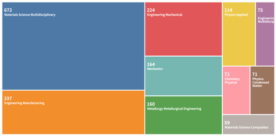 Visualisation treemap chart of different disciplines that published articles on “additive manufacturing on lattice structure” research (data retrieved from the WoS database on 20 June 2022).