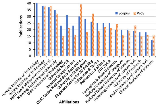 Publication affiliation for “additive manufacturing on lattice structure” research (data retrieved from Scopus and WoS on 20 June 2022).