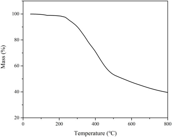 TGA was used to determine the thermal stability of L-DMA, which was carried out using the synchronous thermal analyzer (TA TGA55, New Castle, DE, USA) The L-DMA was protected in an N2 atmosphere at a flow rate of 20 mL/min, in the temperature range from room temperature to 800 °C at a heating rate of 10 °C/min.