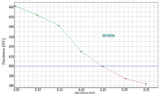 When setting the parameters of the thermochemical treatment, the temperature and time of exposure are very important because they have a tempering effect and they finally influence the depth of the layer. A higher nitrocarburizing temperature decreases the hardness of the specimen surface and vice versa. Table 6 shows the difference between the temperature used and the surface hardness, as well as the depth of the nitration case.
