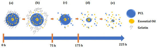 Various essential oils are encapsulated to preserve and improve their bioactivity, and the great challenge is to create chemical mechanisms such that the EE% is maintained for as long as possible. Few reports have evaluated the variation of the EE% as a function of time [10,77]. The addition of preservatives in colloidal systems represents an alternative to enhancing the formulation stability. The industrial applicability of colloidal systems based on polymeric or biodegradable particles is limited, due to their reduced physicochemical stability over long periods of storage. The main limitations are the particle aggregation, chemical stability of the carrier, and the undesirable exposure of the bioactive substance to the solution medium [69,78,79]. Furthermore, it is important to emphasize that biodegradable formulations are susceptible to microbial proliferation [10].