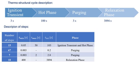 - A relaxation phase was added after the purging phase in the thermomechanical loading cycle: during this phase, the thrust chamber slowly returns to environmental thermal conditions, with consequent relaxation of thermal stresses.