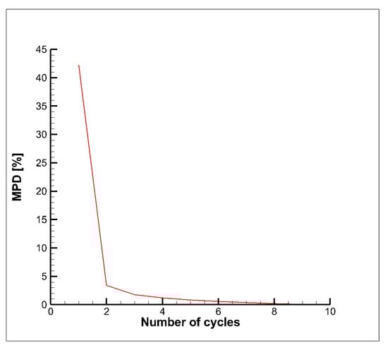 Three cases were considered for comparison, considering the simulation of 10, 5 and 3 global model loading cycles: the values for those cases are all smaller than 4% (see Figure 10).