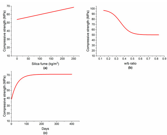 - In this study, parametric analysis (PA) was conducted and variation in mechanical properties was checked with only silica fume content, w/b ratio, and the age of specimens. In the future, it will be useful to conduct PA using a more accurate ML technique and to explore variations in mechanical properties with cement content, aggregate, and superplasticizer dosages as well. Moreover, sensitivity analysis needs to be investigated;