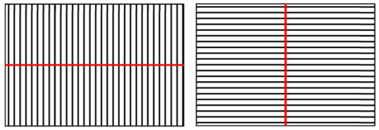 The measurements for the CL confocal microscope were made with the 10× objective, the same with which the confocal microscope was calibrated. This objective provided a distance between planes (voxel height) of 2 µm. Measurements were taken so that the roughness parameter Ra could be measured both along the instrument x- and y-axes (see Figure 4).