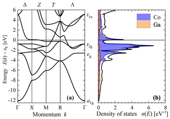 The -CoGa was experimentally investigated in the 1970s and 80s with respect to its magnetic [21,22,23,24] and transport [25] properties. Its electronic structure was rarely calculated and only reports on stoichiometric, paramagnetic CoGa are available [26,27].