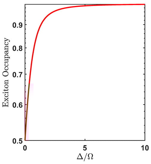 However, in Ref. [19], it was demonstrated that the final exciton occupation taking into account temperature is given by Equation (32) and is plotted in Figure 5: