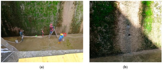 Investigation of the civil engineering works of a dam (a) and the current state of its concrete (b).