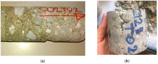 High porosity concrete in extracted samples: (a) Column, (b) Beam.