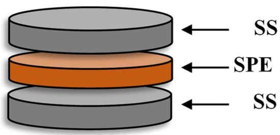 where, A is the film’s area, whereas t is its thickness. The measurements of EIS were made from a cell consisting of stainless steel SS |SPE film| SS as explained in Figure 1.