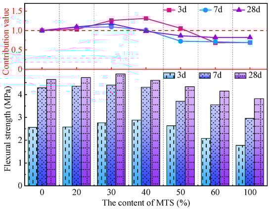 Effect of MTS content on flexural strength of MTSC and strength contribution value.