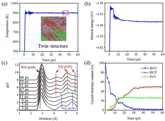 - Li, P.; Wang, L.S.; Yan, S.L.; Meng, M.; Xue, K.M. Temperature effect on the diffusion welding process and mechanism of B2–O interface in the Ti2AlNb-based alloy: A molecular dynamics simulation. Vacuum 2020, 173, 109118. [Google Scholar] [CrossRef]