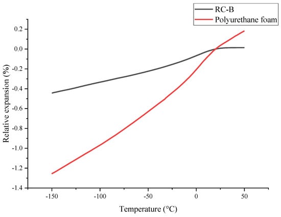 Relative expansion curves of basic thermo-reflecting coating and polyurethane foam.