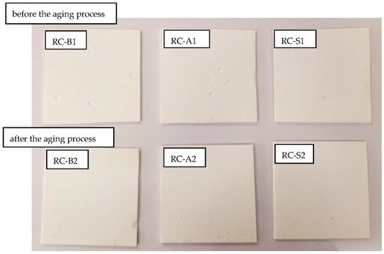 Coating samples before (RC-B1, RC-A1, RC-S1) and after the aging process (RC-B2, RC-A2, RC-S2).