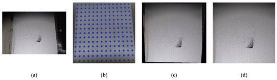 where , are the pair of corrected coordinates; M is a perspective transformation; and , denote for the pair of the original coordinate. The effect of perspective transformation is shown in Figure 1d.