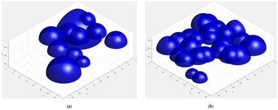 Three-dimensional distributions of the asperities identified with the 9PSP method. (a) Bright surface. (b) Matt surface.