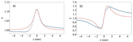 where the weak-field refractive index is n0. The description of n± allows identifying different physical mechanisms responsible for the optical nonlinearity governing the transmittance given by Equation (1) with dependence on the constants A and B. These parameters are related to the third-order susceptibility tensor , and they take different values for an electronic phenomenon and while a thermal mechanism corresponds to and .